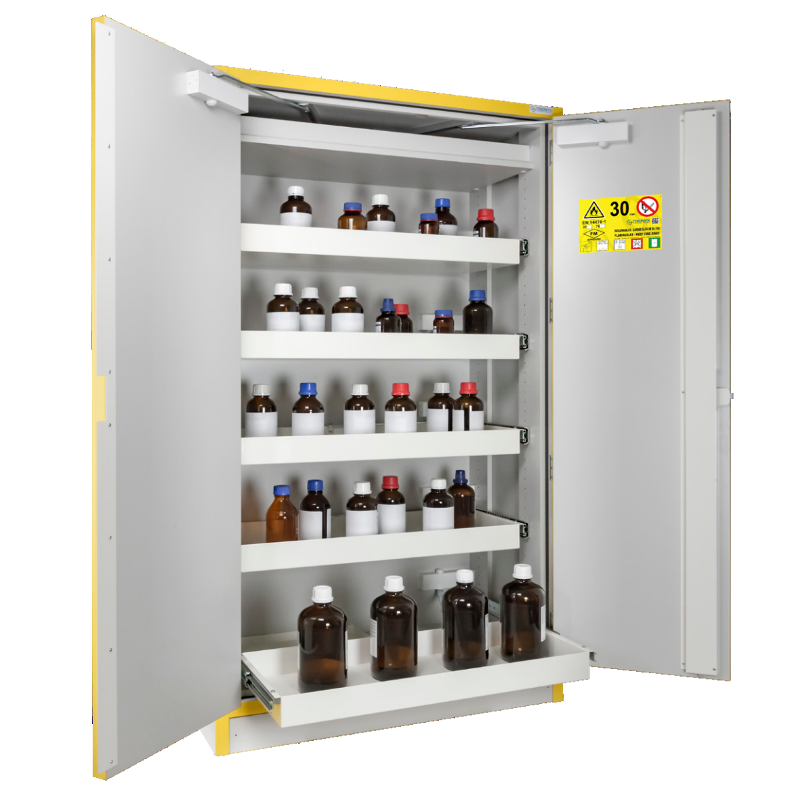 Ces armoires ne conviennent pas au stockage des produits très corrosifs (acides nitrique, sulfurique, chlorhydrique...).