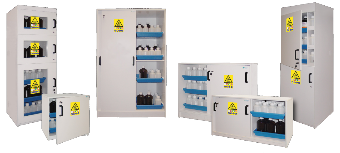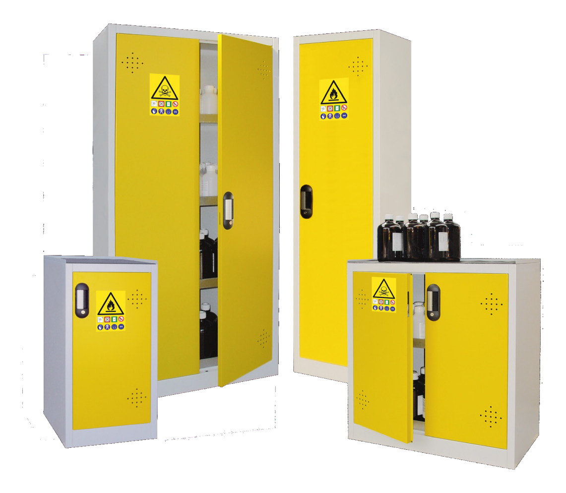 - Permettent le stockage de vos produits dangereux en toute sécurité et en conformité avec la législation.