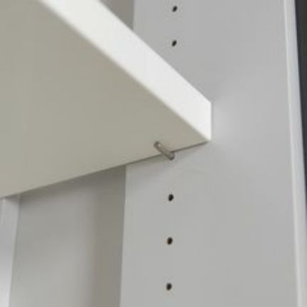 - Étagères de rétention réglables en hauteur au pas de 32 mm.