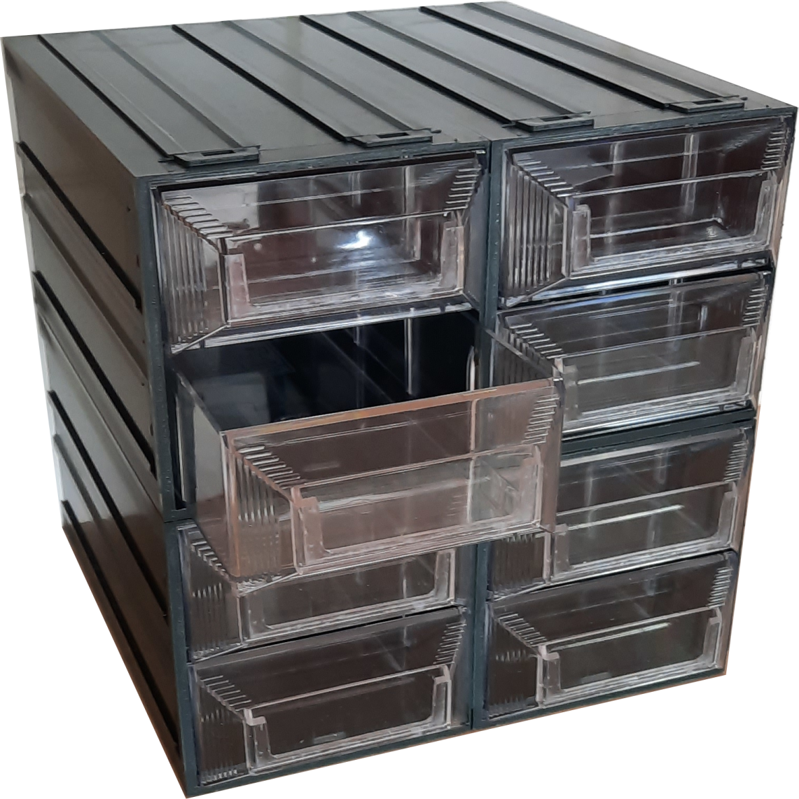 Les tiroirs sont transparents, ils sont dotés d'un support étiquette (L 65 x H 22 mm) et chaque tiroir est livré avec un séparateur.